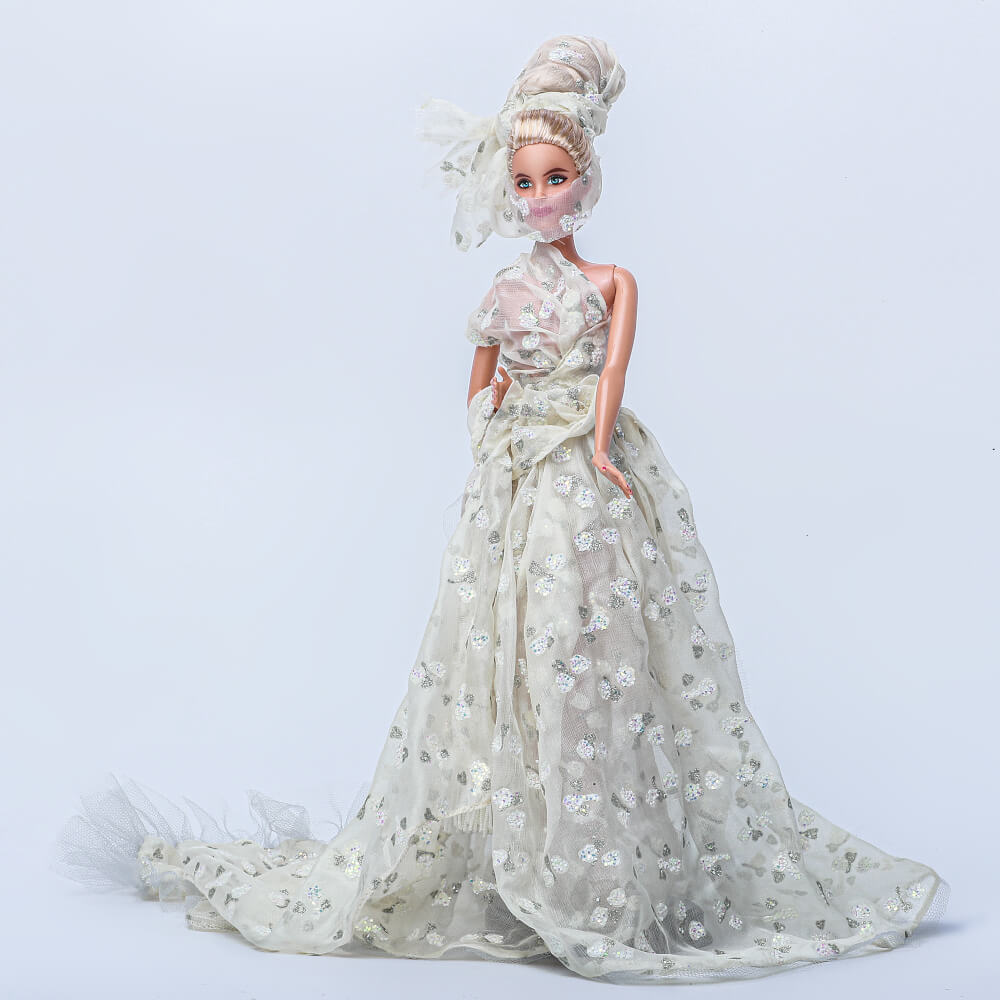 Na závěr bych ještě rád zmínil jednu dámu, která přijala výzvu, filantropku a designérku Liliu A. Khousnoutdinovou, která vytvořila panenku z ručně tkané látky z Bhútánu, tzv. kiry. Lilia je vykupuje od bhútánských žen za férové ceny. Dá se tedy říct, že její panenka kombinuje udržitelnost, férovost a slow fashion.