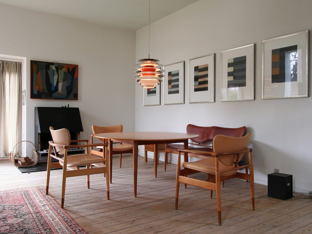 Minulé léto se zde po dlouhých letech znovu otevřel i další vzácný objekt – vlastní domov legendárního architekta a designéra Finna Juhla. Rezidence, která je nyní součástí muzea Ordrupgaard, se může pochlubit inspirativní kompilací velkého množství ikonických kusů nábytku, barev, světla i umění. Mobiliář tvoří většinou jeho vlastní návrhy (židle Pelican, Cheftain nebo 48, stůl Silver a také lavice 48 Sofa Bench, umístěná u kruhového stolu v největší ložnici domu), jen výjimečně se v něm objevují návrhy dalších pionýrů severského modernismu, jakým byl také třeba Poul Henningsenem (jeho lampa Contrast visí nad stolem).