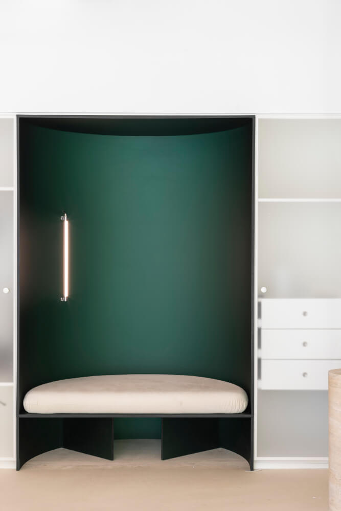 Výsledkem nemusí být hybrid nového technického vybavení, několika kusů nábytku od prestižních designových značek a víceméně náhodně poskládaného vintage nábytku, což je velmi častý český recept. Výsledek ani nemusí působit jako neutrální, standardní hotelový nebo hubový interiér, které bývají celkem zaměnitelné. Jak je vidno, návrh může být plný kontrastů – překvapivý a zároveň charizmatický. I když má každý prostor ve Sparks svou vlastní identitu, jako celek dohromady fungují, jako když poskládáte krásnou stavebnici. Interiér totiž architekti vybavili autorskými prvky od A do Z. Jen pár jich je z produkce, která se dá koupit na jejich webu nebo ve vybraných obchodech s art designem, masivní většina židlí, stolů, lamp, pohovek i závěsů ale vznikla na míru místu v srdci Bruselu. Svou povahou zůstávají věrné DNA Cobra Studios, k němuž patří plastičnost, základní geometričnost, barevnost, objemnost, sochařskost a dekorativnost zároveň.