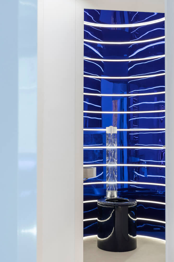„Museli jsme být vynalézaví. Použité nástěnné obklady pocházejí z automobilového průmyslu – používají se na kapoty aut, z tunningu jsme si vypůjčili značení, které ve Sparks tvoří orientační systém, trubky jsou vytvořeny z košťat, oblouky a zábradlí je z měkkého leštěného akrylu… Chtěli jsme vytvořit futuristickou obdobu k art deco stylu. Vstup do Sparks znamená vstup do nového prostředí, svět kontrastu a reflexe, ideální pro setkání s novými tendencemi.“