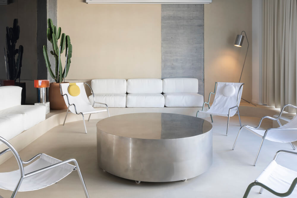 Ve Sparks vidíme nově definovaných, použitelných objemů mnoho. „Rozpor je klíčový, svět je nudný, dopřejme věcem okolo nás barvy. Tvrdé tvary se musí srážet s měkkými doteky. Kusy musí být minimalistické, ale dekorativní. Každý kus musí odolat času a trendům,“ říkají tvůrci a poukazují třeba na lesklé kovy, dualitně postavené k matnému a jemně působícímu travertinu, na průsvitné a neprůhledné…