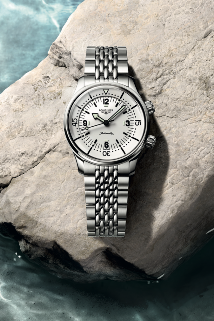 Švýcarská značka Longines představila model Legend Diver 39 mm s matně bílým číselníkem. Čistý design s kontrastními prvky zůstává věrný duchu původního modelu z roku 1959, technicky však odpovídá tomu nejlepšímu, co dnes značka nabízí. Černé ručky a luminiscenční indexy vynikají maximální čitelností, nad nimi se klene jemně vypouklé safírové sklo s antireflexní úpravou. Dvojkorunková silueta a vnitřní otočná luneta jsou charakteristickými znaky této řady. Hodinky jsou odolné vůči magnetickému poli, nárazům i tlaku až 300 metrů pod hladinou. Jsou tedy ideální výbavou pro všechny, které baví ponořit se do hlubin, ale i pro ty, kteří se raději potápějí v každodenním shonu města. Hodinky koupíte v butiku Carollinum a na e-shopu za 83 200 Kč.