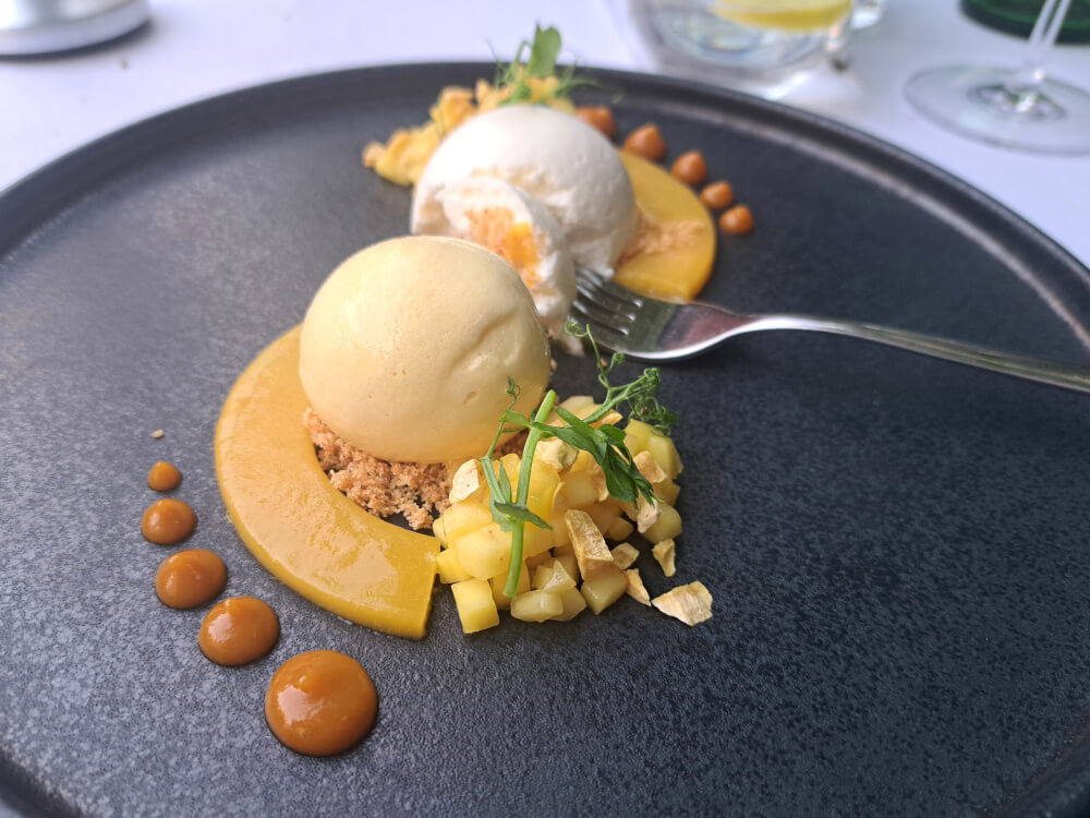Kromě sofistikované sezónní kuchyně oceníte i bezchybný servis, zvlášť pokud si na dobré způsoby potrpíte a mrzí vás obrovský propad úrovně tuzemské obsluhy v postcovidové éře. Přestože zahrádka restaurace Le Grill byla i uprostřed pracovního týdně zcela zaplněna, na nic jsme dlouho nečekali a všechny naše dotazy byly zodpovězeny s erudicí a nadšením. Přístup byl velmi nevtíravý, dostalo se nám pozornosti tak akorát, aby to nijak nenarušilo kouzlo intimní večeře ve dvou.