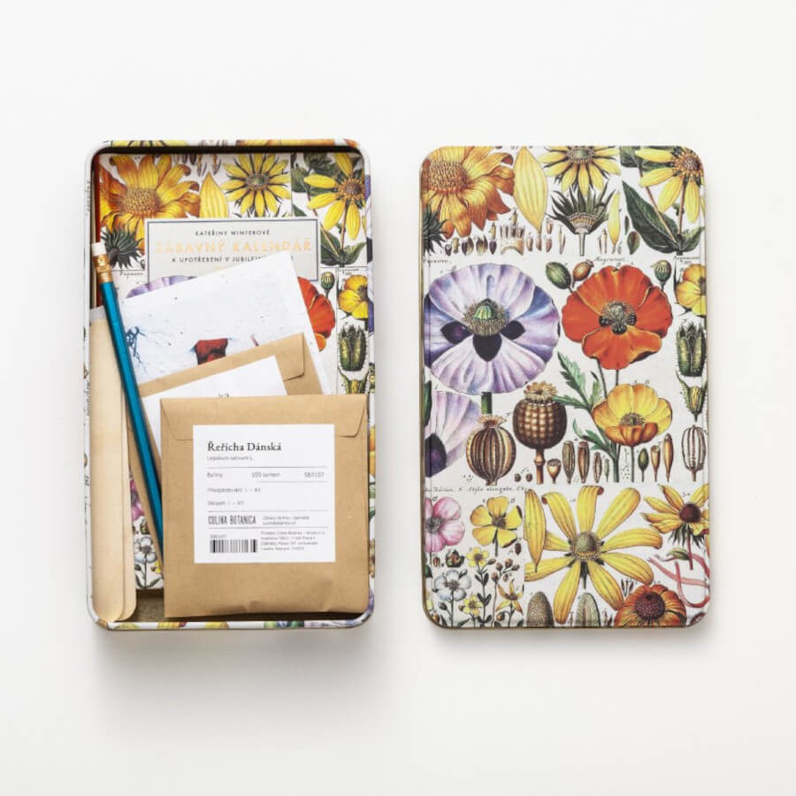 Herečka a průvodkyně televizním pořadem Herbář opět připravila diář doplněný o informace pro zahradníky. Dozvíte se, kdy se sbírají které léčivé bylinky, a můžete si přečíst zajímavé texty o rostlinách i o lidech z historických periodik. Diář seženete také v dárkovém balení v krásné vintage plechové krabičce s motivy lučních květů. V ní navíc najdete semínka řeřichy a petržele, tužku a pohlednici se zimním motivem z rostoucího papíru, který obsahuje květinová semínka.