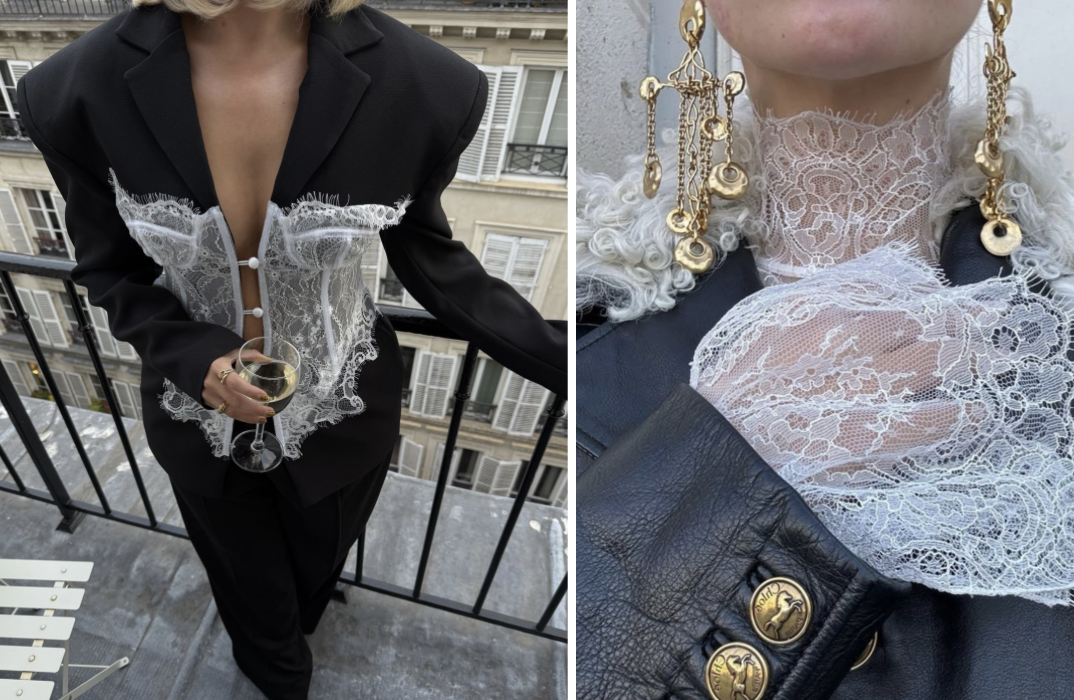 Business styl v ženském podání si postupně prošel proměnou. Od ostré power estetiky 80. let, která měla ženám pomoci obstát v mužském světě, jsme se dostali k uvolněnější, hravější formě, kde si můžeme dovolit pravidla porušovat. A právě tady vstupuje na scénu krajka. Jemná halenka pod oversized sakem, krajková sukně vykukující zpod perfektně střiženého kabátu nebo transparentní top kombinovaný s kalhotovým kostýmem. Nejde o kontrast pro kontrast, ale o dialog dvou světů – racionality a emocí, struktury a jemnosti, síly a zranitelnosti.