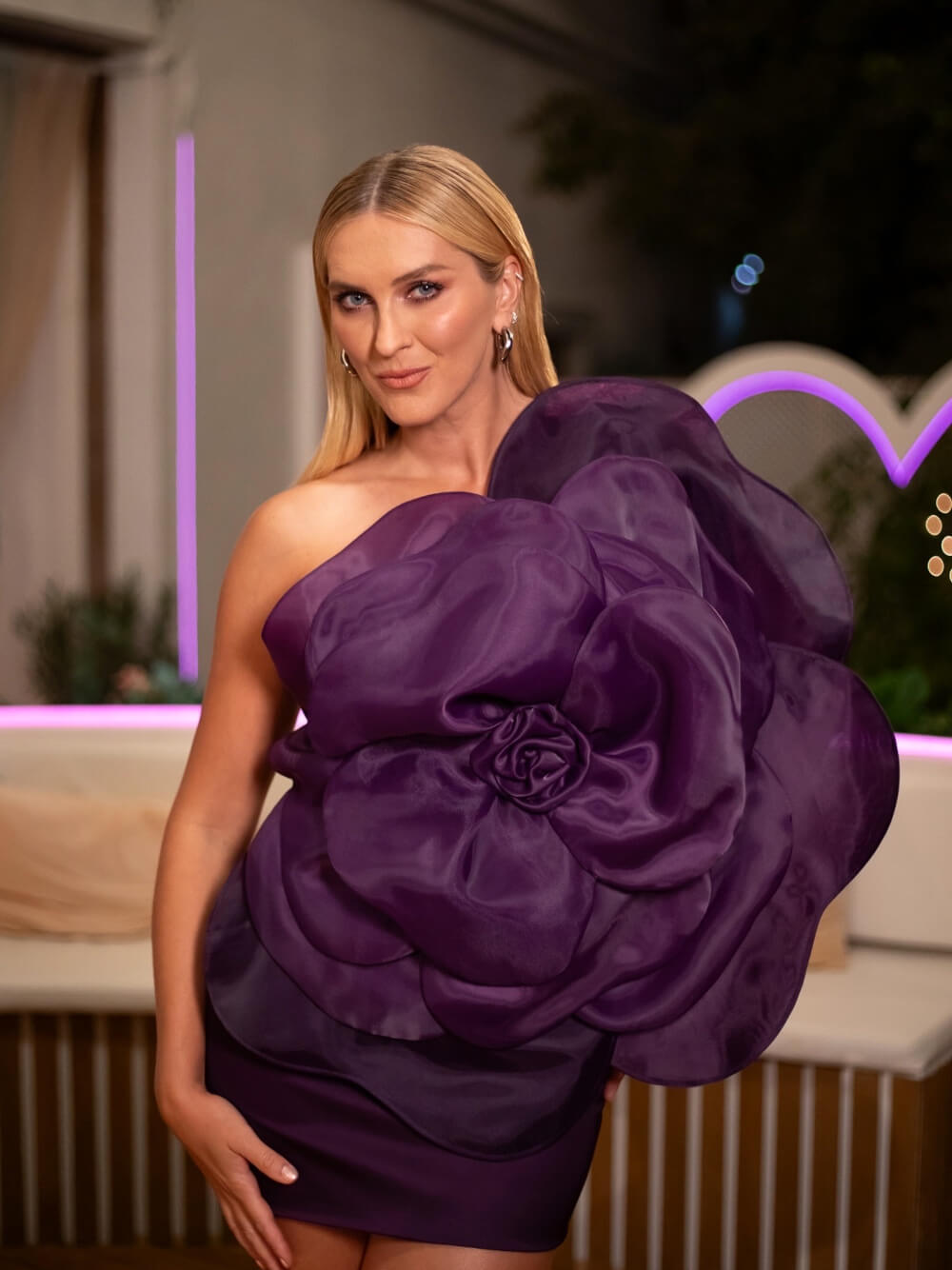 „Všechny stylingy jsme jako každý rok tvořily s mou dvorní stylistkou Danielou Pilnou. A moje nejoblíbenější looky? Rozhodně fialové šaty ve tvaru květiny od ukrajinské značky Jamemme, na ty jsem se moc těšila! A miluju letošní Casa Amor look. Latexové šaty s aplikacemi srdíček jsou od značky Cultnaked, kterou nosí třeba Beyoncé, Kendall Jenner nebo Hailey Bieber. Myslím, že tématicky perfektně sedly,“ říká moderátorka.