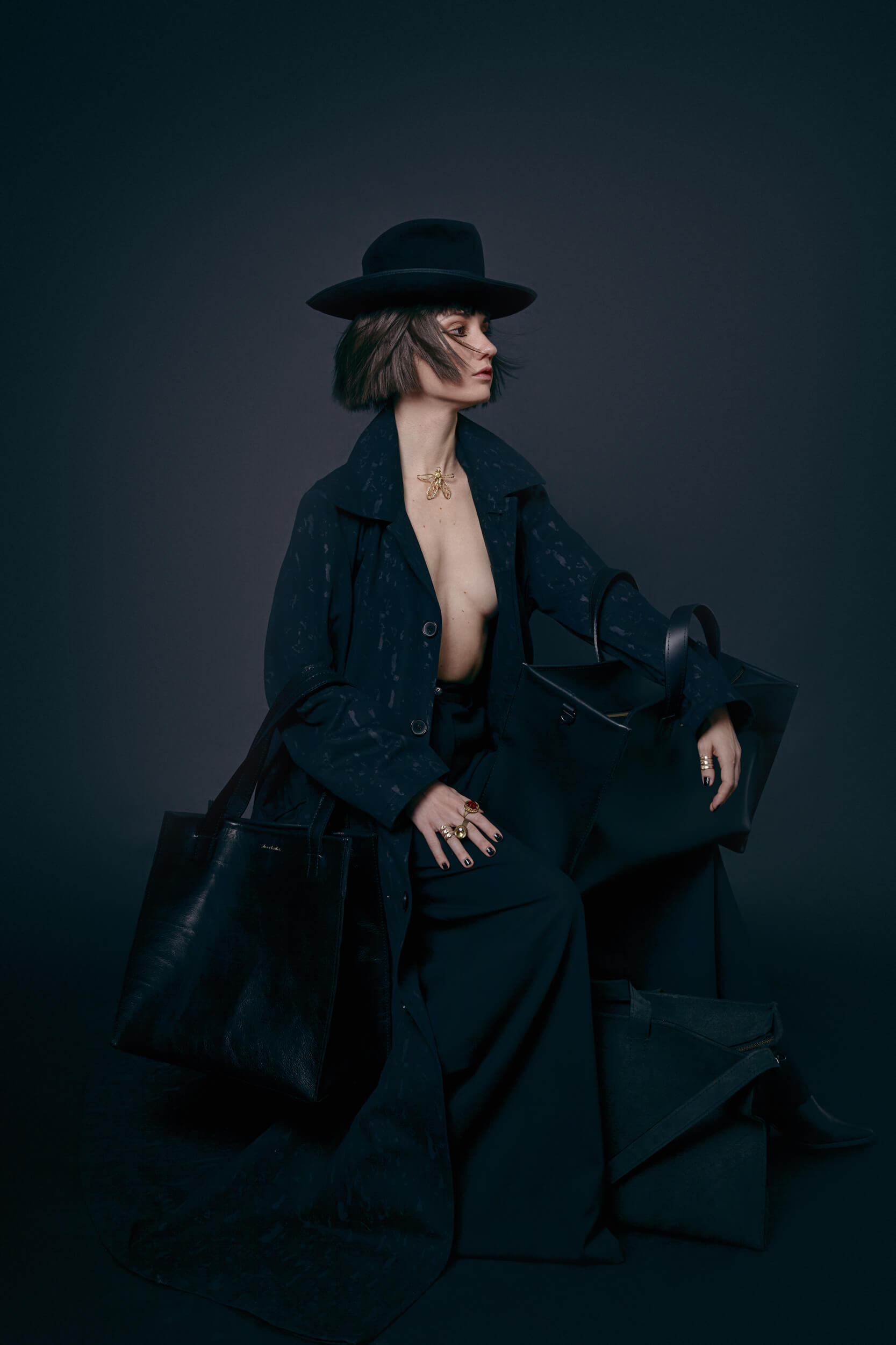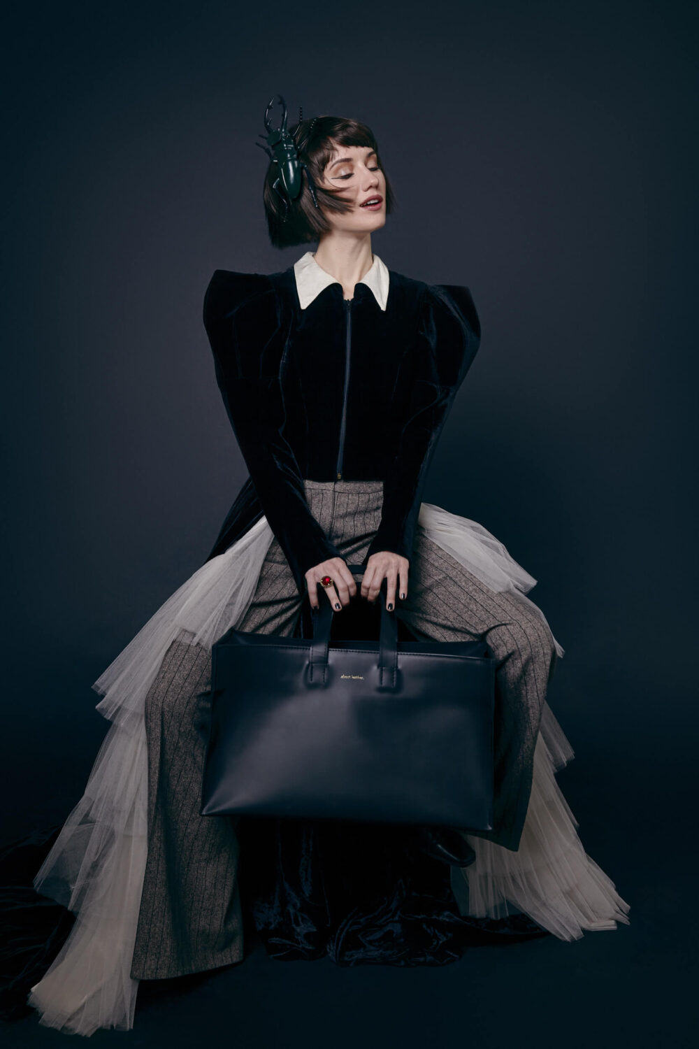 Barbora Musilová před lety marně hledala kabelku, která by jí vyhovovala. A tak se rozhodla začít šít vlastní. Kožené, minimalistické, elegantní, udržitelné. Všechny kabelky tvoří vlastnoručně a v malých sériích v ateliéru na pražské Letné. Od svých ikonických malých ledvinek, které s radostí už čtyři roky nosí nejen její múzy Eliška Křenková a Jenovéfa Boková, se postupně dostává k větším kabelkám. Bestsellery v černé barvě doplněné o objemnější tašky weekender a shopper jsou hlavními hvězdami nejnovější kampaně .about black., pro niž se Eliška v režii fotografky Bet Orten proměnila v tajemnou lady.