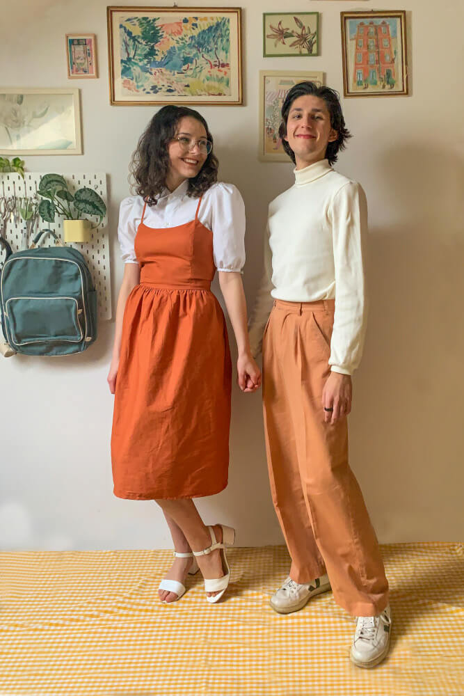 Veronika Dušková je v šití samouk. Od 15 let šije oblečení pro sebe i své blízké, o tvůrčí postupy se dělí na sociálních sítích, kde také přináší tipy, jak poznat kvalitní materiály a jak se dobře obléct i s minimem peněz.