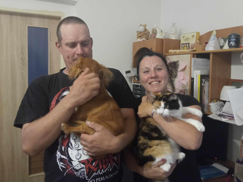 „Máme u nás kocourka, který skoro nemá ouška a přišel k nám s tak zničenou kůží, že se na něj nesmělo ani sáhnout, nebo dalšího kocourka, který byl jednou nebo vícekrát tak nakopnut, že má poškozenou kyčel a na zadní nožku sotva chodí. Staráme se o perskou kočičku, která vyrůstala a žila v přepravce, kde i vykonávala potřebu, kvůli čemuž má psychické trauma a přestala růst, a taky mainského kocoura, který byl v tak zanedbaném stavu, že mu cucky srsti prorůstaly do kůže. Máme tu pejsky z rumunských útulků smrti a fenky, které se narodily v Rumunsku na ulici. Dále tu s námi je pejsek, který žil uvázán na řetězu u boudy a byl mlácený, nebo mini prasátko, kterého se majitel zbavil proto, že začalo růst. Dnes má 60 kilogramů,“ uvádí příklady Adéla Prachová, která na dárcovské platformě Znesnáze21 založila sbírku, aby manželům Fialovým pomohla s pomáháním.