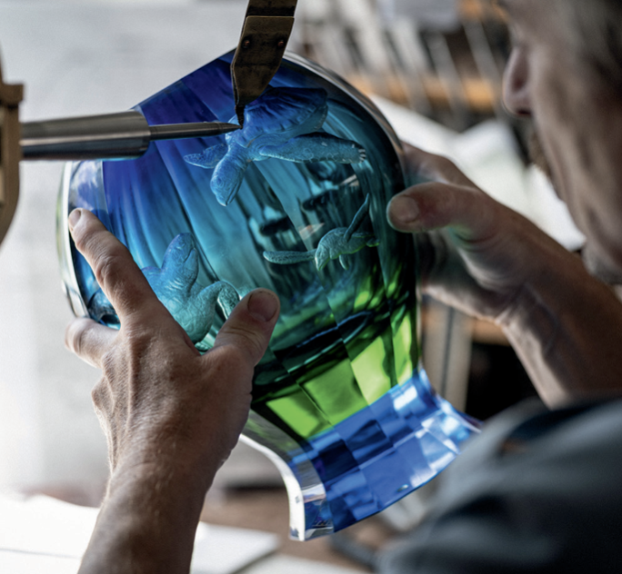 „Sochař z volné ruky“ Martin Janecký je jedním z mála lidí na světě, kteří mistrně ovládají speciální techniku tvarování skla zevnitř žhavé baňky.