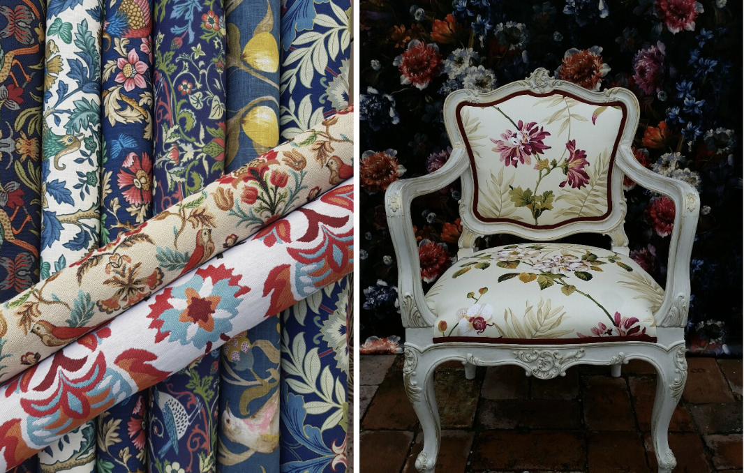 Vzhledem k mé zálibě v květinových dezénech se nejraději věnuji klasickým tiskům na bavlněných materiálech. Díky dostupnosti výroby těchto látek je zde opravdu velký prostor pro výběr – doslova tisíců motivů, které různé textilní společnosti nabízejí. Pokud klient požaduje dát nový „kabát“ křeslu či sofě, jednoznačně volím čalounické látky s tkaným motivem.